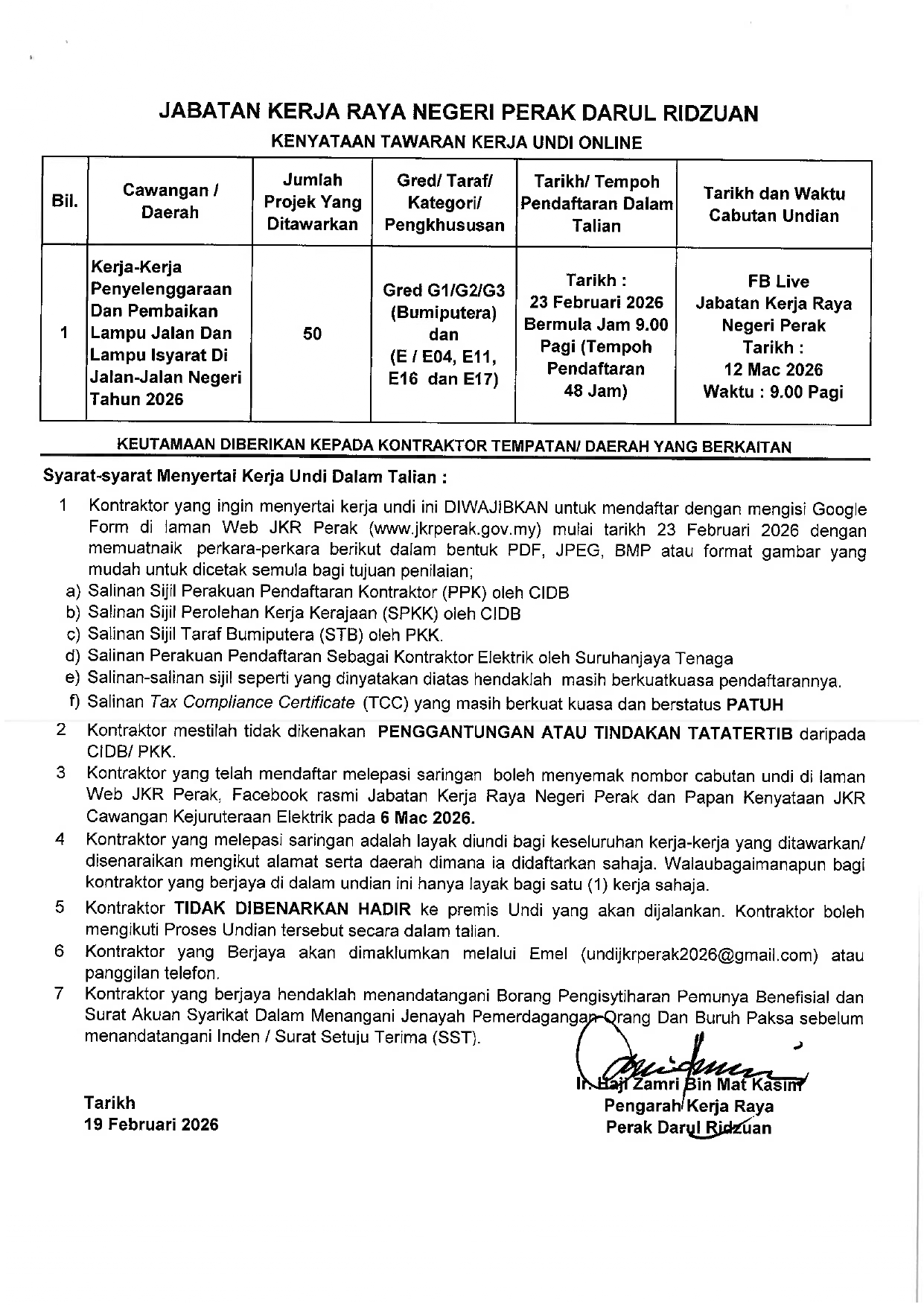 IKLAN- KENYATAAN TAWARAN KERJA UNDI ONLINE 2026