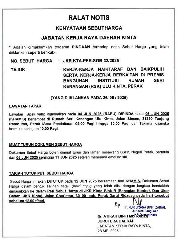 28.05.2025 : NOTIS SEBUTHARGA JKR.Kta.Neg.SGB 32/2025 (G3 B15 & B28) RALAT