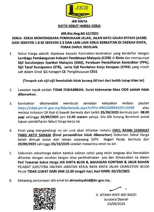 25.09.2025 : NOTIS SEBUTHARGA JKR.Kta.Neg.BG 62/2025 (G1 & CE01)